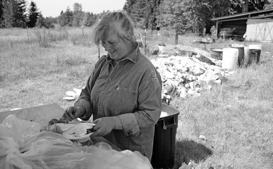 With her hands buried in last night’s meals and insects buzzing all around in the hot sun, Jeffres seems to always have a smile on her face.