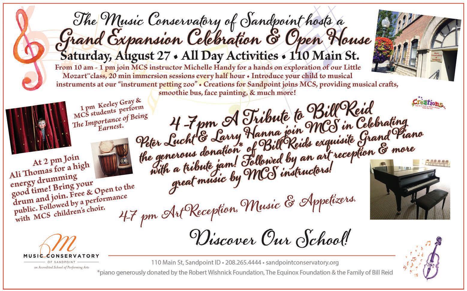 To attend the free daylong series of events and activities, stroll into the new downstairs offices at MCS at 110 Main St. in Sandpoint from 10 a.m.-7 p.m. on Saturday, Aug. 27.