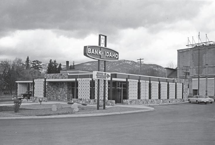 On Highway 95 (201 E. Superior St.) coming into Sandpoint, looking northwest. The Bank of Idaho later became Mountain West Bank, then First Interstate Bank.