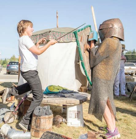 •Children got to hold and try on Medieval weaponry including chainmail, which was handmade by Montana Shakespeare in the Parks own, Weezil Samter. All photos by Cameron Barnes.