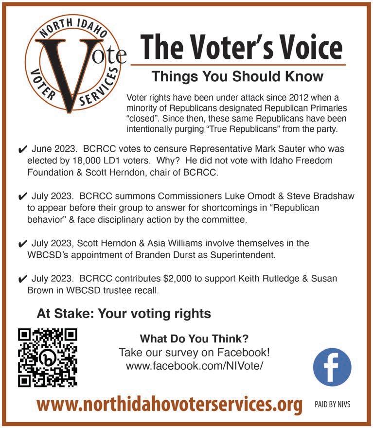 The Sandpoint Reader welcomes letters to the editor on all topics. Requirements: –No more than 300 words –Letters may not contain excessive profanity or libelous material. Please elevate the discussion.