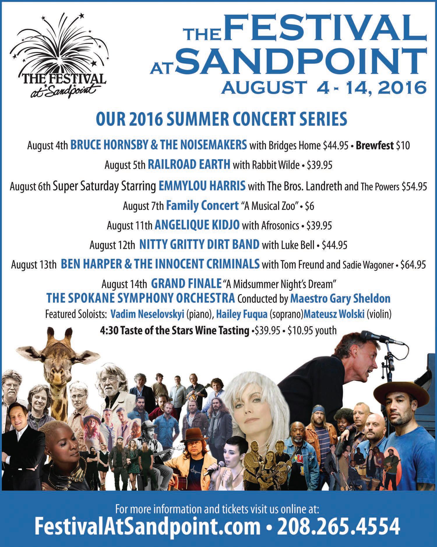 Welcome to the Festival at Sandpoint! For the next two weeks, prepare yourself for an onslaught of good times, great tunes and the best party in town.