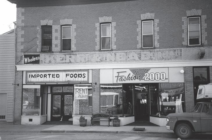 The Elliot Building at the corner of Second Avenue and Pine Street. A faded sign above the street entrances read, “Kerr & Nead.” Active stores in 1999 were “Imported Foods” and “Kandy’s Fashion 2000.”