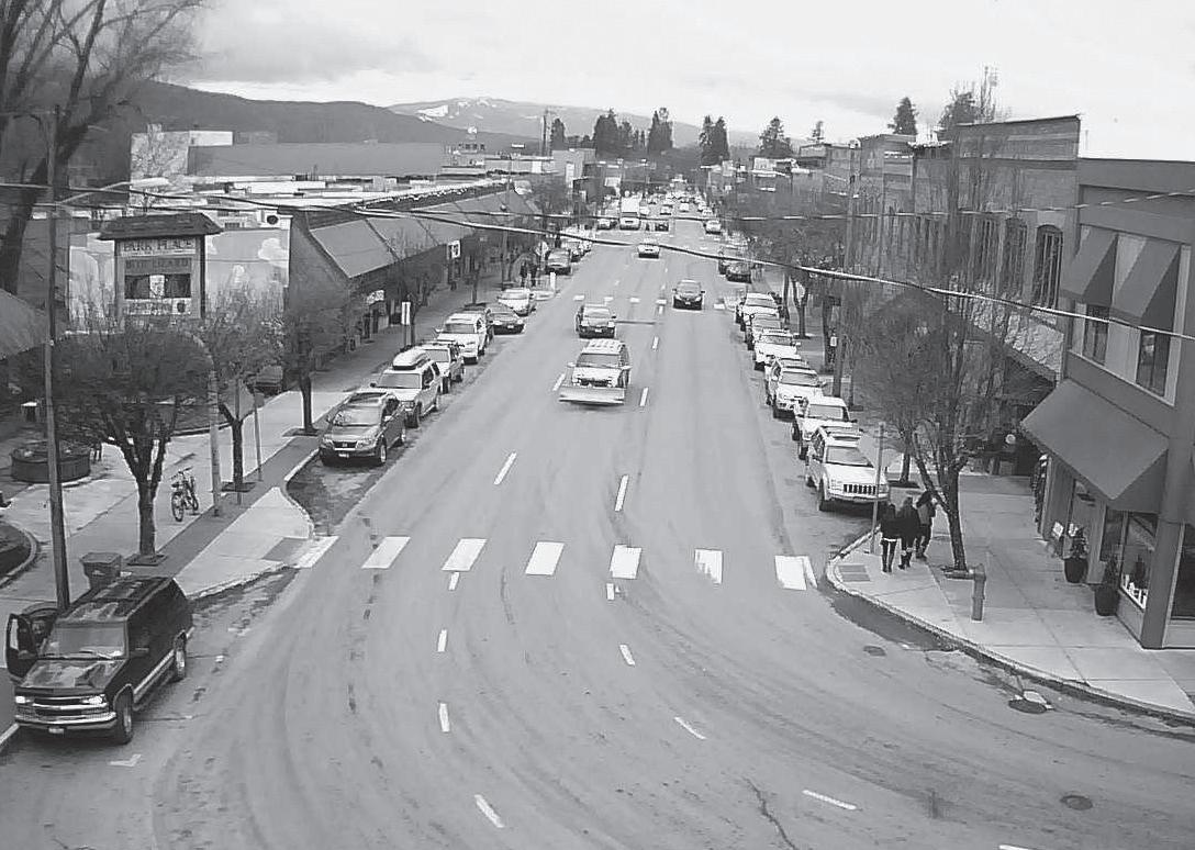 The same view today. This image taken from Sandpoint Property Managementâs web cam, mounted atop the Snow River building at First and Cedar.