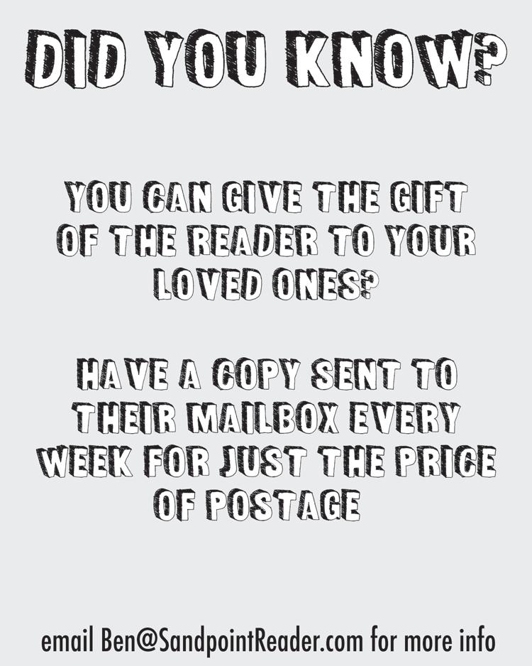 Submit stories to: stories@sandpointreader.com