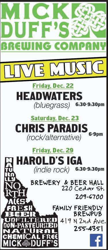 6-9 p.m., FREE. MickDuff’s Beer Hall, 220 Cedar St., 208209-6700, mickduffs.com. Listen at facebook.com/Headwaters123.