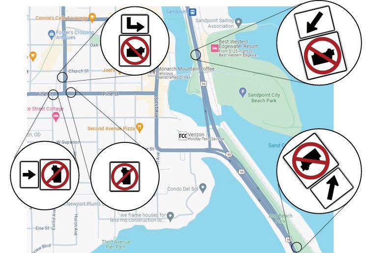 A map showing Sandpoint’s no truck signage. Courtesy image.