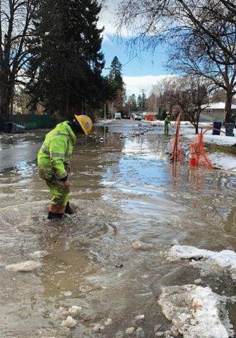 A worker examines a main break in South Sandpoint. Photo by Eric Bond