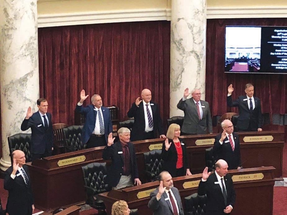 Freshman lawmakers, include newly-elected District 1 senator Jim Woodward in the upper left, are sworn in at the beginning of December. Photo courtesy Jim Woodward