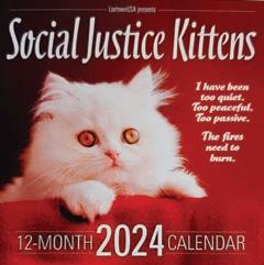 By their nature, newspaper offices receive a lot of communications. Most are useful to the gathering of news and events, others are warm-hearted, including notes of thanks, encouragement and even donations. Still others are not-sowelcome, in which category we place various brickbats, insults and (on rare occasions) veiled and not-so-veiled threats. There’s yet another genre of communique, and that falls in the spectrum of just plain weird, a prime example of which we found slipped under our door the other day. Put simply, it was a postcard advertisement for a 2024 calendar of “Social Justice Kittens.” That’s right, 12 months of pictures of “adorably defiant” kitties who are “heroically declaring their righteous anger” at the various inequities afoot in the world. As one fluffball puts it in the sample image of the calendar’s cover, “I have been too quiet. Too peaceful. Too passive. The fires need to burn.” Apparently not a joke, the calendar comes from LiarTownUSA.com, which is the website of Sean Tejaratchi, whose musings — some far more offensive than others — on Tumblr made their way into the 2017 book, LiarTown: The First Four Years, which The New Yorker described as “brilliant fake news.” As for the Social Justice Kittens, LiarTownUSA invites holiday shoppers to, “Ignore the privileged garbage kittens eagerly supporting the status quo in other calendars! Let these woke, whiskered warriors (and their pals the pandering pups) inspire you, or give them as a gift to a loved one as a unique souvenir of the modern social justice era!”