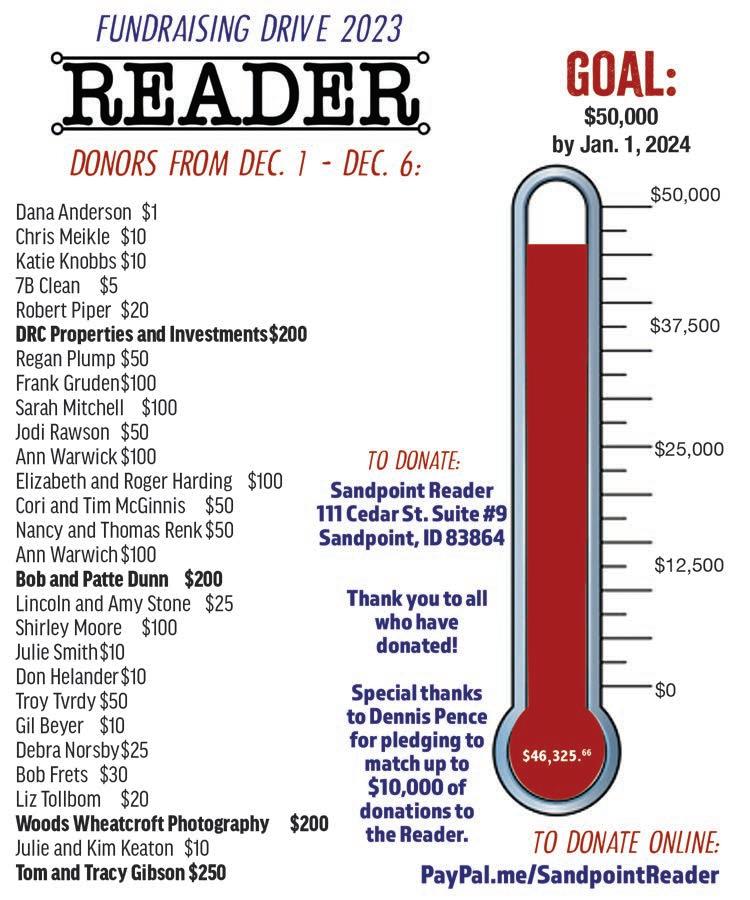 The Sandpoint Reader welcomes letters to the editor on all topics.