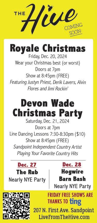Also, don’t forget the deadline for our 208 Fiction writing contest is Friday, Jan. 3 at 5 p.m. Make sure stories are exactly 208 words (not including author name and title). Submissions are $5 each (you can submit as many as you like). The winning story will take home $150 in cash. Send to: stories@sandpointreader.com. Please include 208 FICTION in the subject line.