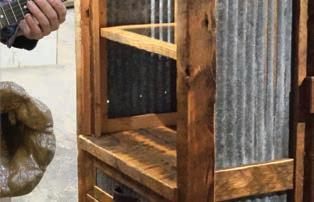 For a showing in ArtWalk last summer, Gentz produced several pieces that epitomized the nature of reclaimed work. One was a corrugated reclaimed bookcase, with old corrugated metal pulled from the Grainary and reclaimed wood used from an old mine.