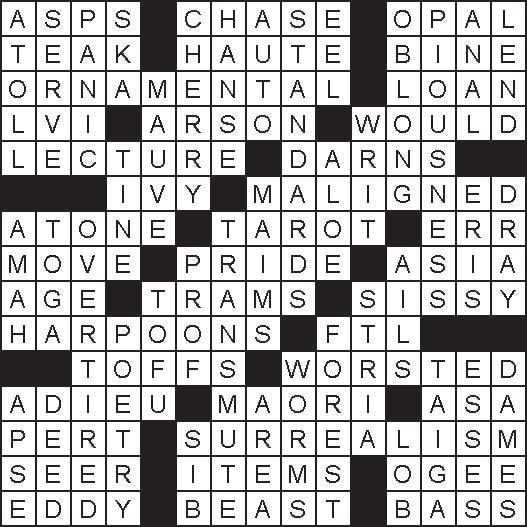 1. Vipers 5. Pursue 10. Iridescent gem 14. Heavy, durable furniture wood