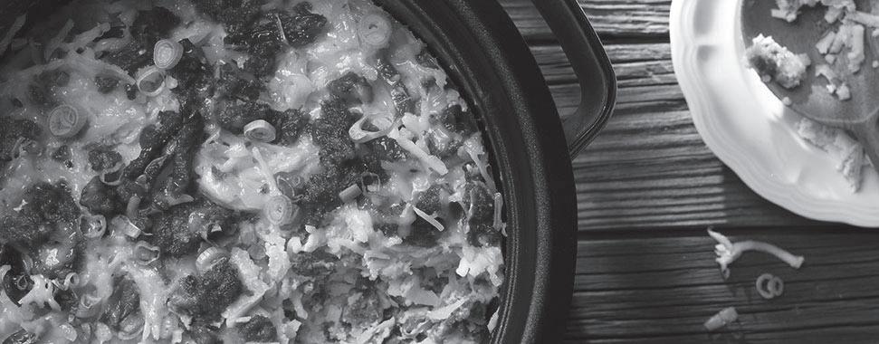 4. Layer one-third of the hash browns, sausage, green onion mixture and cheese into crock.