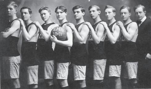 The 1910-1911 Sandpoint High School basketball team. The only player identified is Oscar Lindgren, third from the left.