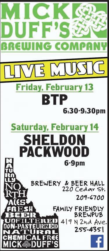 But don’t be a slacker all weekend; there is a ton of fun going on around town. The 53rd Sandpoint Winter Carnival kicks off Friday, Feb. 13 with the Parade of Lights, which has expanded to include First Avenue and has more than two dozen floats, followed by a block party in front of the Pend d’Oreille Winery, where the Winter Carnival king and queen will be crowned.