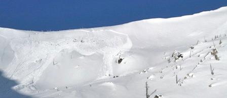 One more factor that is isolated to the ridgetops is the effect of wind. Wind moves a lot of snow. In our mountains most of the wind is blowing over the ridgetops from west to east. That means the deepest snow is normally on the easterly aspects, from north to southeast looking at a compass. What used to be a gradual slope with no snow cover is now a steep and imposing feature at the top of the mountain. Think overhanging cornice with a bulging pillow of snow below it.