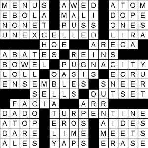 38. Fertile area in a desert 39. Beige 40. Casts