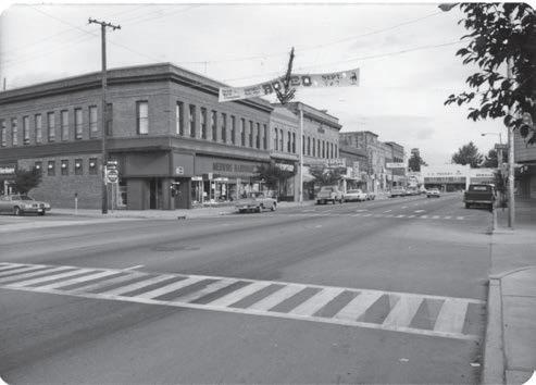 First Avenue, looking north at the intersection of Main Street. Merwin’s Hardware used to be located on this corner, and down at the end of First Ave. you can see J.C. Penney’s.