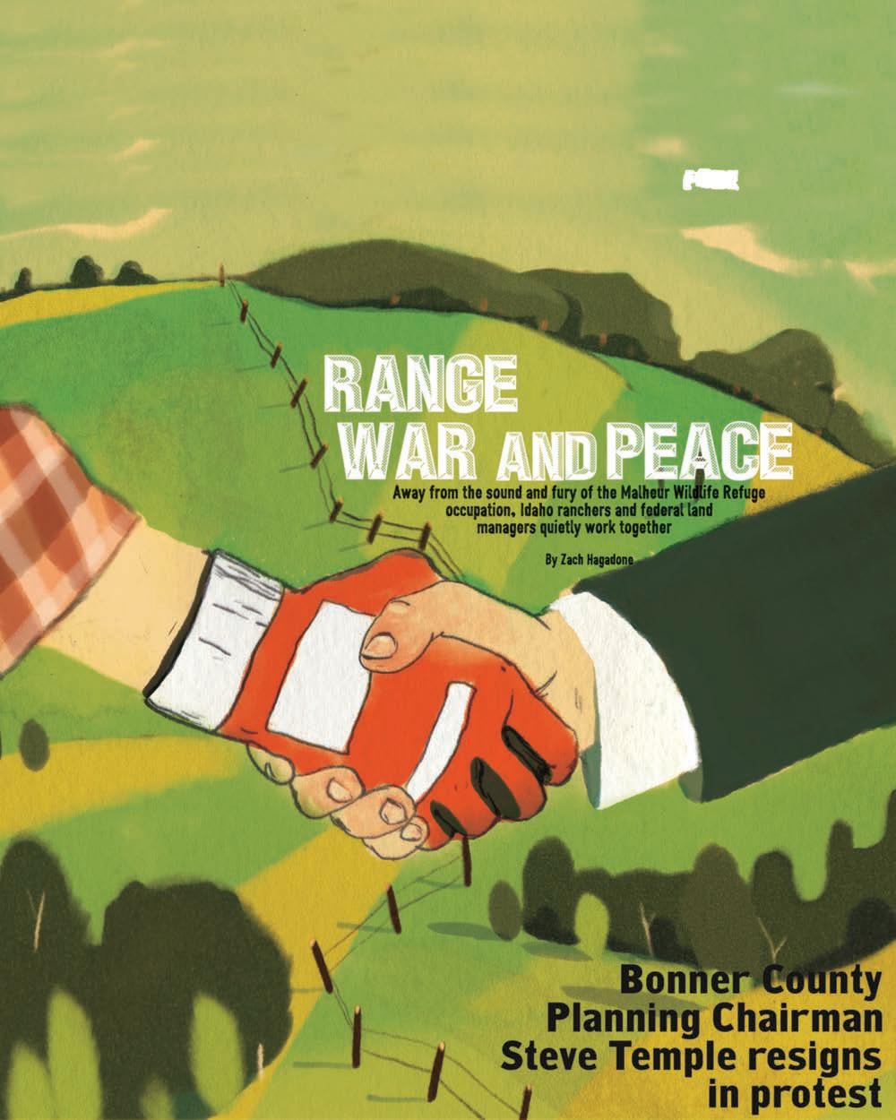 This week’s cover illustrated by Ryan Johnston to accompany Zach Hagadone’s piece, “Range War and Peace.” Johnson is an illustrator originally from Idaho but he is currently working in the Bay Area. Check out some of his work at www. OldFloyd.com.