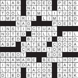 60. Pear-shaped instrument 61. Anagram of “Coast” 62. You (archaic) 63. Perished