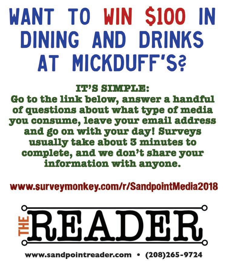 Check us out on the web at: www.sandpointreader.com
