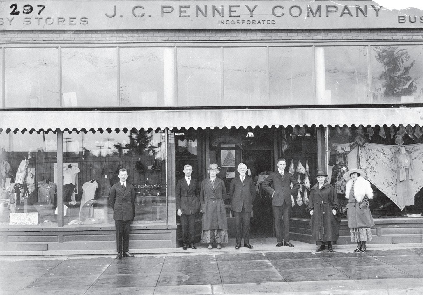 The J.C. Penney store on Cedar Street at the corner of First Avenue. The woman second from the right is Nellie Powell