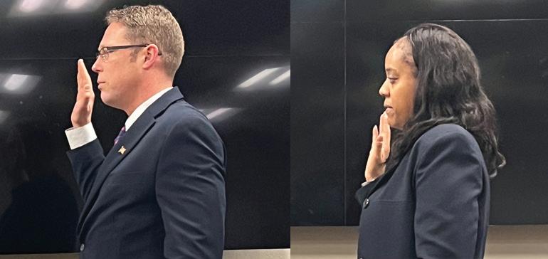 Luke Omodt, left, and Asia Williams, right, are sworn in as Bonner County Commissioners. Photos by Lyndsie Kiebert-Carey.