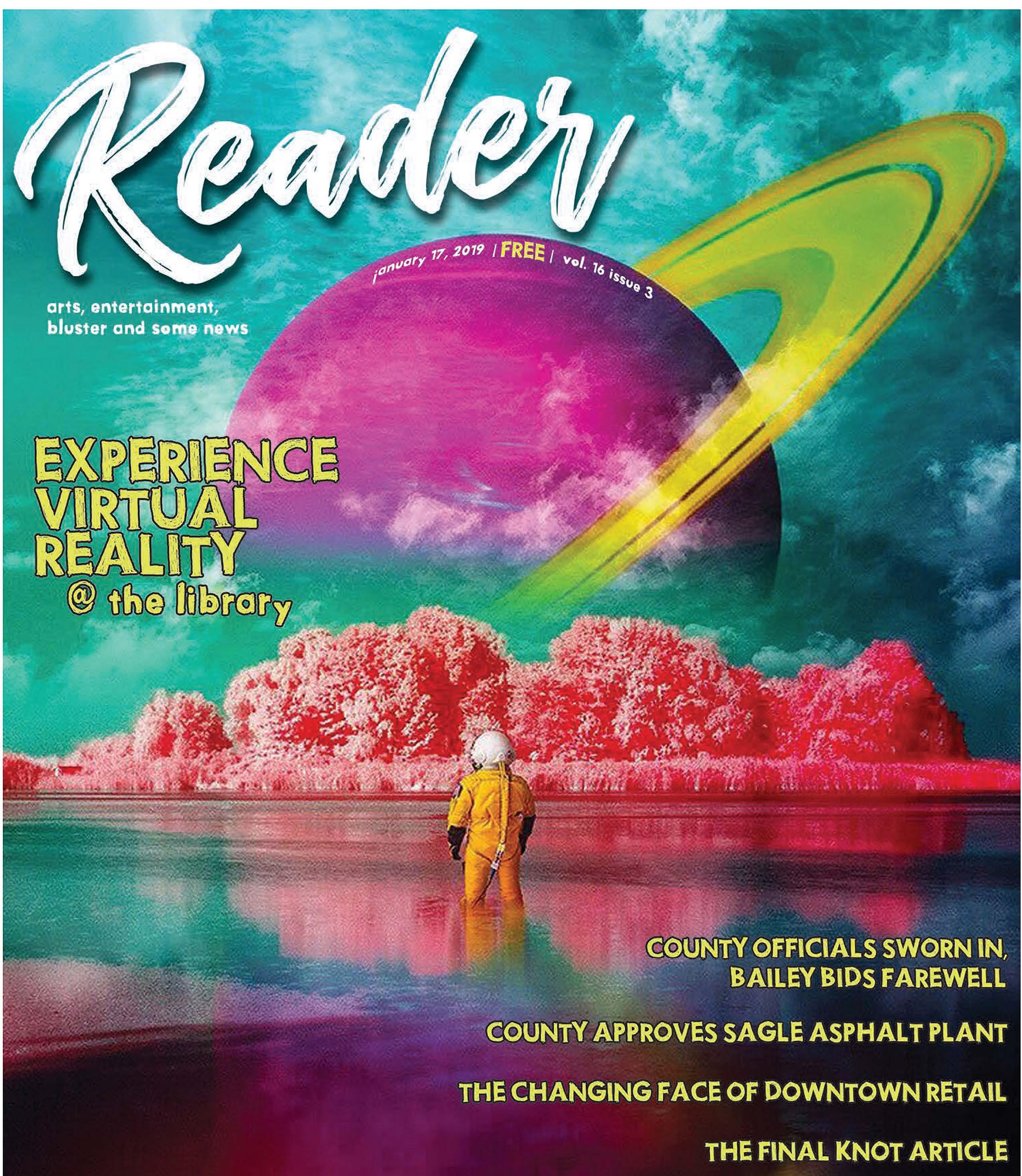 We hope to provide a quality alternative by offering honest, in-depth reporting that reflects the intelligence and interests of our diverse and growing community. The Reader is printed on recycled paper using soy-based ink. Leftover copies are collected and recycled weekly, or burned in massive bonfires to appease the gods of journalism. Free to all, limit two copies per person.