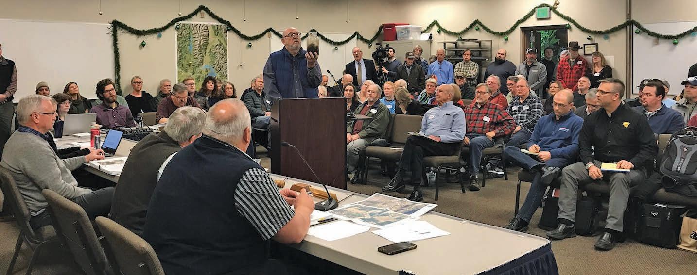 The five-hour hearing saw a packed house in the first floor conference room of the Bonner County Administration Building, with attendance pushing 100. The BOCC, which acts as a judicial body when appeals are filed against the P&Z board, first heard a summary of the batch plant proposal from the P&Z department, then from the permit applicant — Interstate Concrete and Asphalt — and finally from nearly 40 concerned citizens, almost all from the Sagle neighborhood where the proposed plant would be located just off Highway 95 in the Linscott gravel pit.