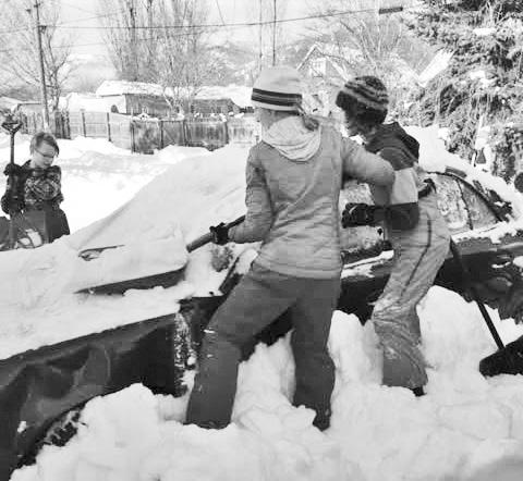 In addition to going to the homes of area elders, the 4th through 8th graders shoveled huge berms at the Senior and DayBreak Centers parking lot. They cleared the area where the benches and peace pole are by the “SASi Elder Tree” and cleared sidewalks and the ice by the wheelchair ramp.