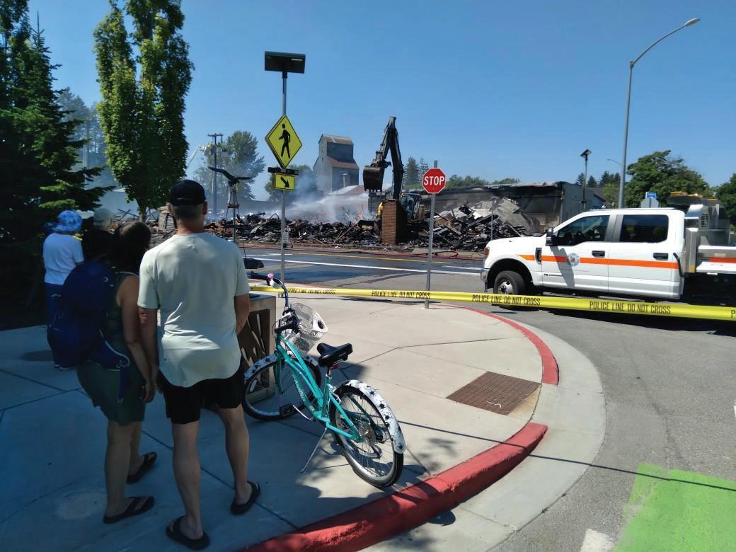 While the smoke has cleared, the rubble remains — as well as an investigation into a fire July 4 that authorities believe was set deliberately and resulted in the total loss of the building housing Army Surplus 1 on the corner of Fifth Avenue and Oak Street.