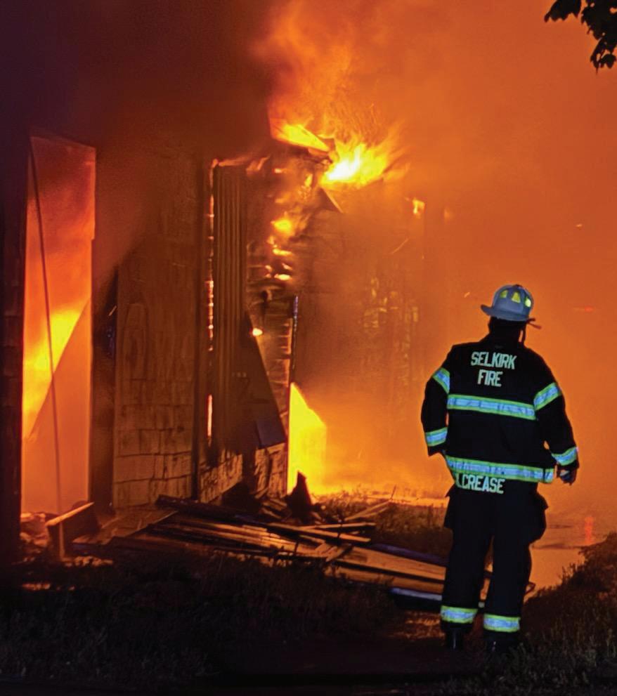 “The two Selkirk firefighters who initially arrived were able to deploy hose lines and save multiple other structures and vehicles on the property.”