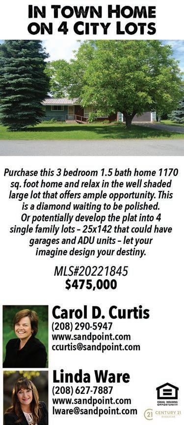 To view a PDF file of the study, go to sandpointidaho.gov/ your-government/meetings/-folder-3040 and click on “Agenda Item 5A Sandpoint Housing and Industrial Analysis” on the right side of the page. To watch a recording of the July 12 workshop, visit the city of Sandpoint’s YouTube channel.
