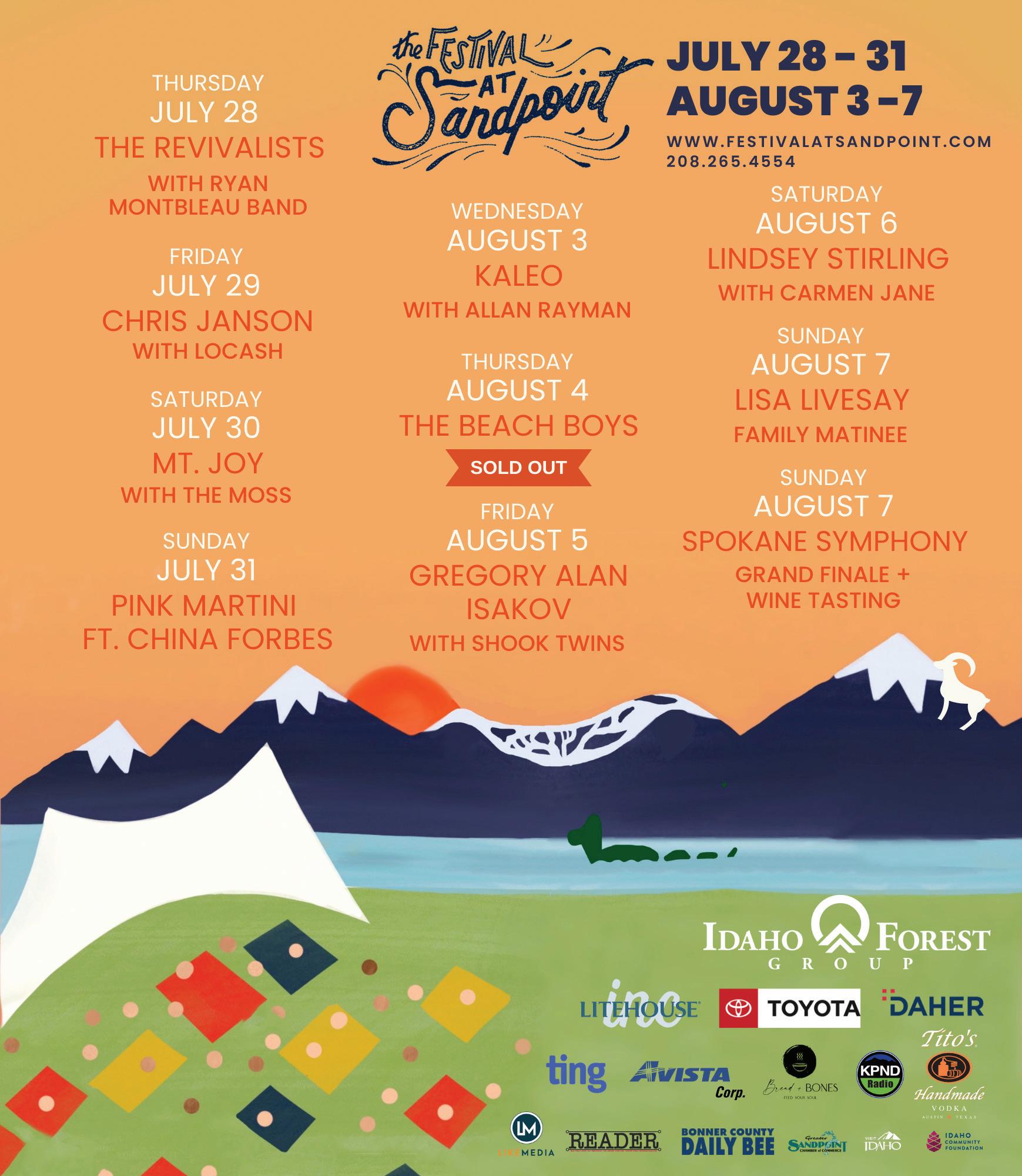 The summer is kicking along nicely and we have some exciting events headed our way, including the Festival at Sandpoint from July 28-Aug. 7. If you stroll by War Memorial Field this week, you’ll see the Festival crew hard at work raising the iconic white tent in preparation for the two-week concert series.