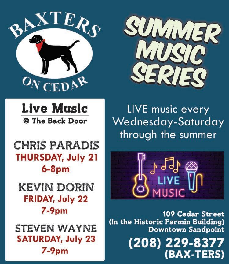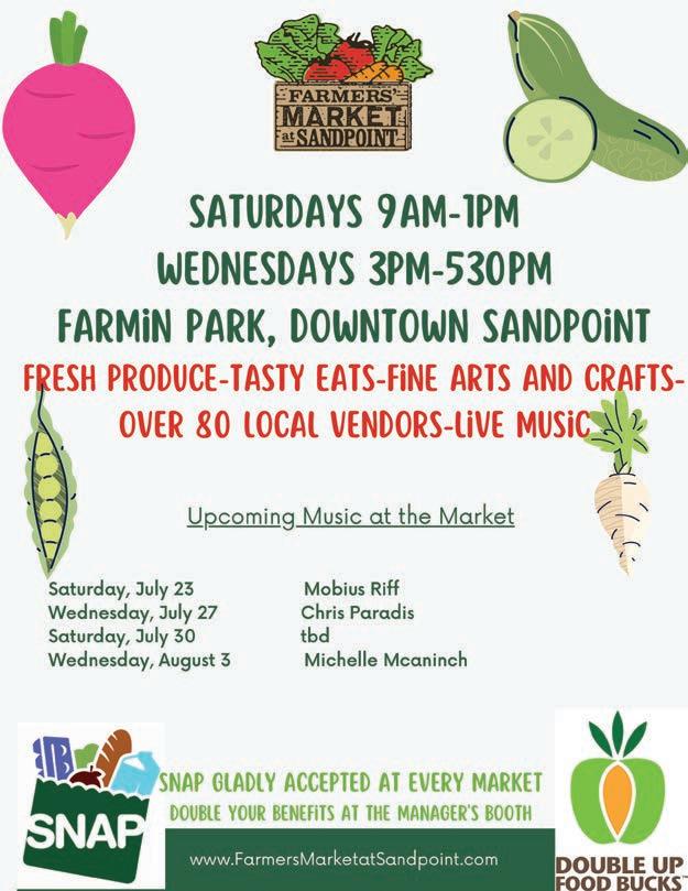 Corrections: I apologize for a few mistakes on the calendar in recent weeks. It’s a really tough thing to keep organized — like herding cats. For best results, please email your events for the upcoming week on Mondays and try to avoid sending event info weeks or months early, where it can sometimes get lost in the shuffle. Please remember, this is a FREE calendar that we provide for our readers and business owners. All you have to do is send in your events to calendar@ sandpointreader.com and we’ll do our best to list them accurately. If we don’t receive your emailed events, there’s no guarantee it will make it on the page. Thanks for your help. — Ben Olson, Publisher