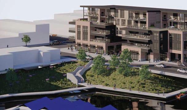 That may have been so, and the amendment may have sailed through without any comment, but for a website loaded with slick renderings depicting a 65-foot-tall mixed-use development billed as “small town luxury living” that ripped through the local social mediascape beginning July 15. Outrage at the scale of the project only grew, as observers parsed through the onebridgestreet. com site seeing 13 high-end condos towering over the creek.