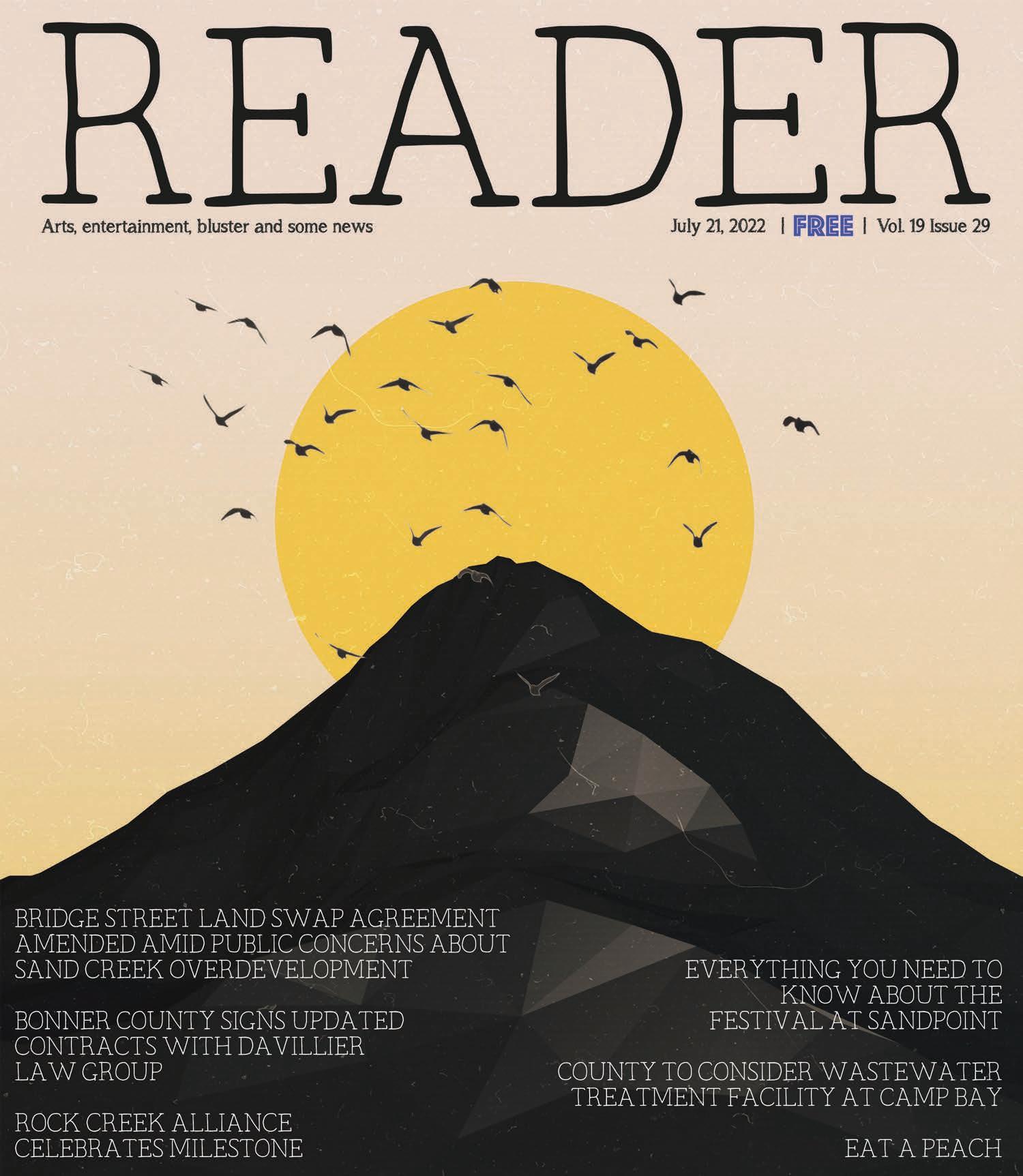 The Sandpoint Reader is a weekly publication owned and operated by Ben Olson and Keokee. It is devoted to the arts, entertainment, politics and lifestyle in and around Sandpoint, Idaho. We hope to provide a quality alternative by offering honest, in-depth reporting that reflects the intelligence and interests of our diverse and growing community. The Reader is printed on recycled paper using soy-based ink. Leftover copies are collected and recycled weekly, or burned in massive bonfires to appease the gods of journalism. Free to all, limit two copies per person