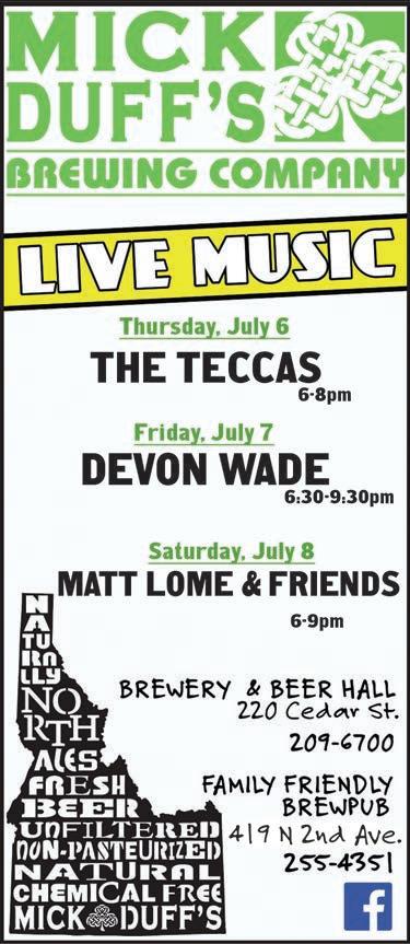 likes of NPR’s Tiny Desk series. The sound is an impeccable, hypnotic mingling of the old-time folk and maritime traditions with haunting, crystalline harmonies and affecting lyrics. It’ll break your heart to miss Mama’s Broke. Little Wolf opening. — Zach Hagadone Doors at 6 p.m., show at 6:30 p.m.; . The Heartwood, 615 Oak St., 208-263-8699, $25 donation/$10 for youth at the gate, mattoxfarm.com. Listen at mamasbroke.ca. Bring blankets, chairs, food and N. A. beverages.