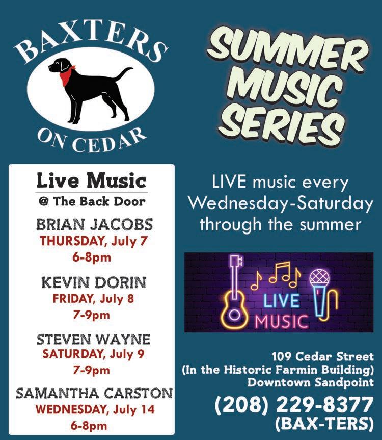 Brendan Kelty Trio, Matchwood Brewing, July 7 Scott Dodson, Pend d’Oreille Winery, July 8