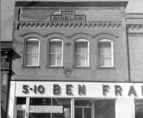 The Bigelow Building on First Avenue, with Ben Franklin 5 and 10 store at the ground floor and apartments upstairs.