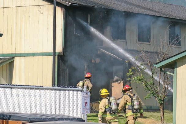 “The unit immediately adjacent to it had not as much fire damage inside,” he said. “It got pretty hot and broke out some of the windows, and the fire went along the eaves of the roofline and burned the outside of three units.”