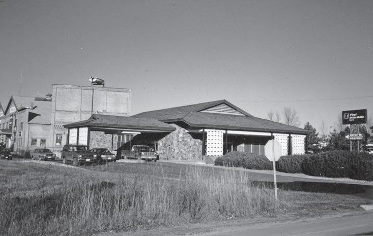 First Interstate Bank on E. Superior Street (Highway 95) in Sandpoint, looking east. The building was later used by Mountain West Bank. Note the Old Power House behind the bank with the famous boat on the roof.