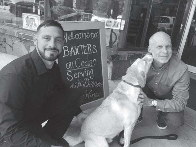 Top: Server Nakia Salazar (left) and Tommy D.,(right) co-owner of Baxter’s on Cedar. Bottom: Drake basks in the sun outside of Ivano’s Del Lago in East Hope.