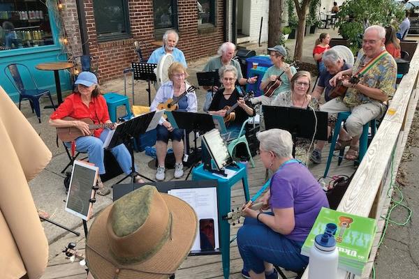 A gathering of ukulele players in Raleigh, N.C. celebrate Make Music Day in 2023. Courtesy photo.