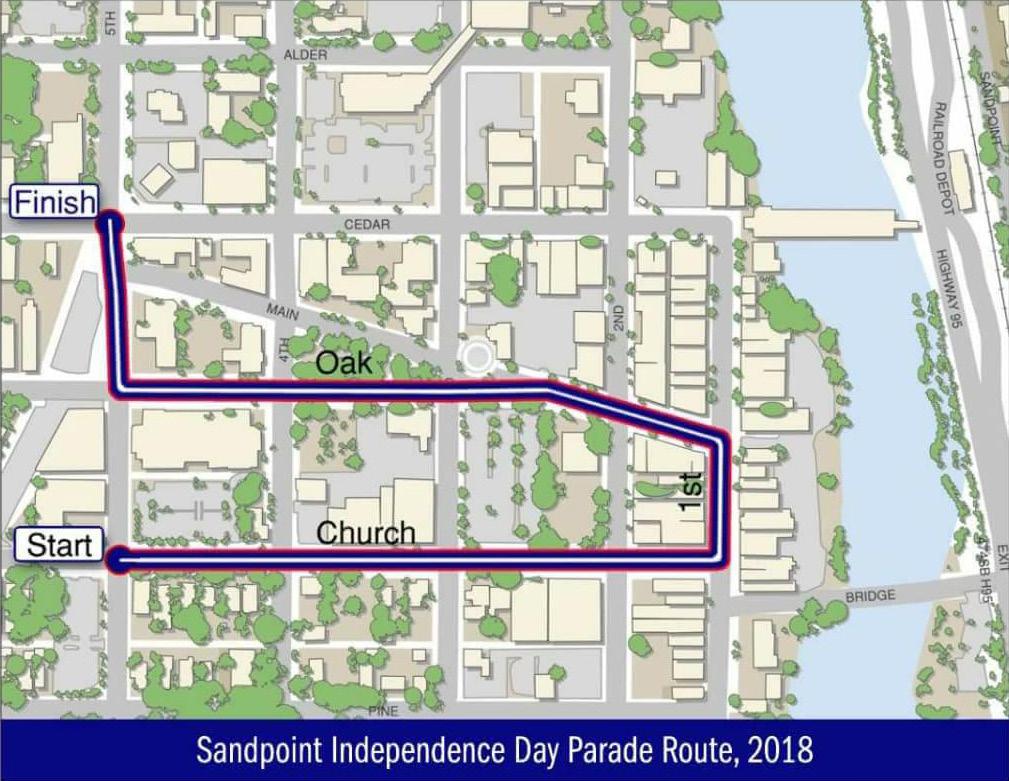 A map of the Indepence Day parade route, courtesy of Sandpoint Lions Club.