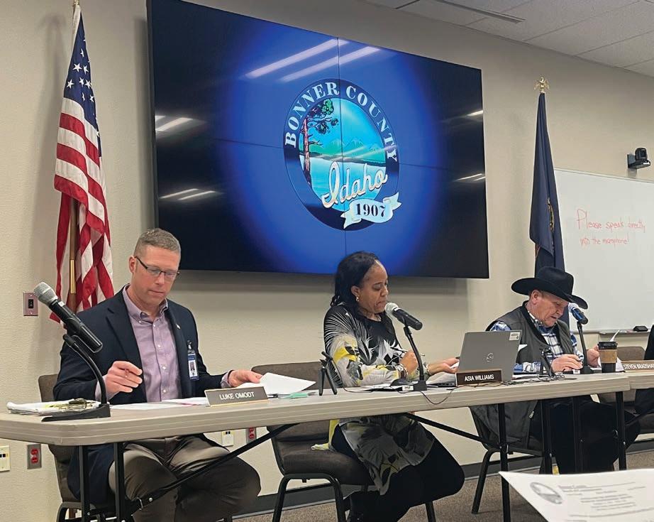 Bonner County commissioners Luke Omodt, left; Asia Williams, center; and Steve Bradshaw, right. Photo by Lyndsie Kiebert-Carey.
