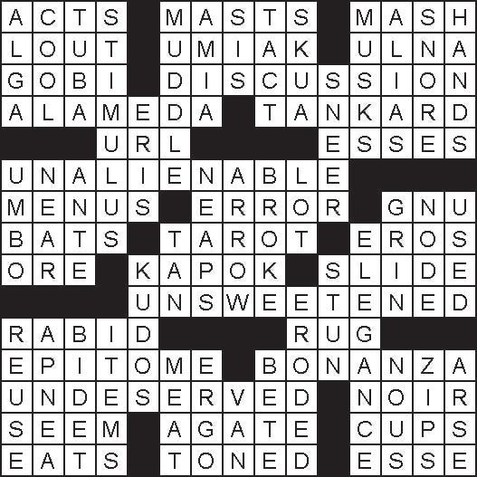 5. Sail supports 10. Sitcom set in Korea 14. Boor 15. Inuit boat