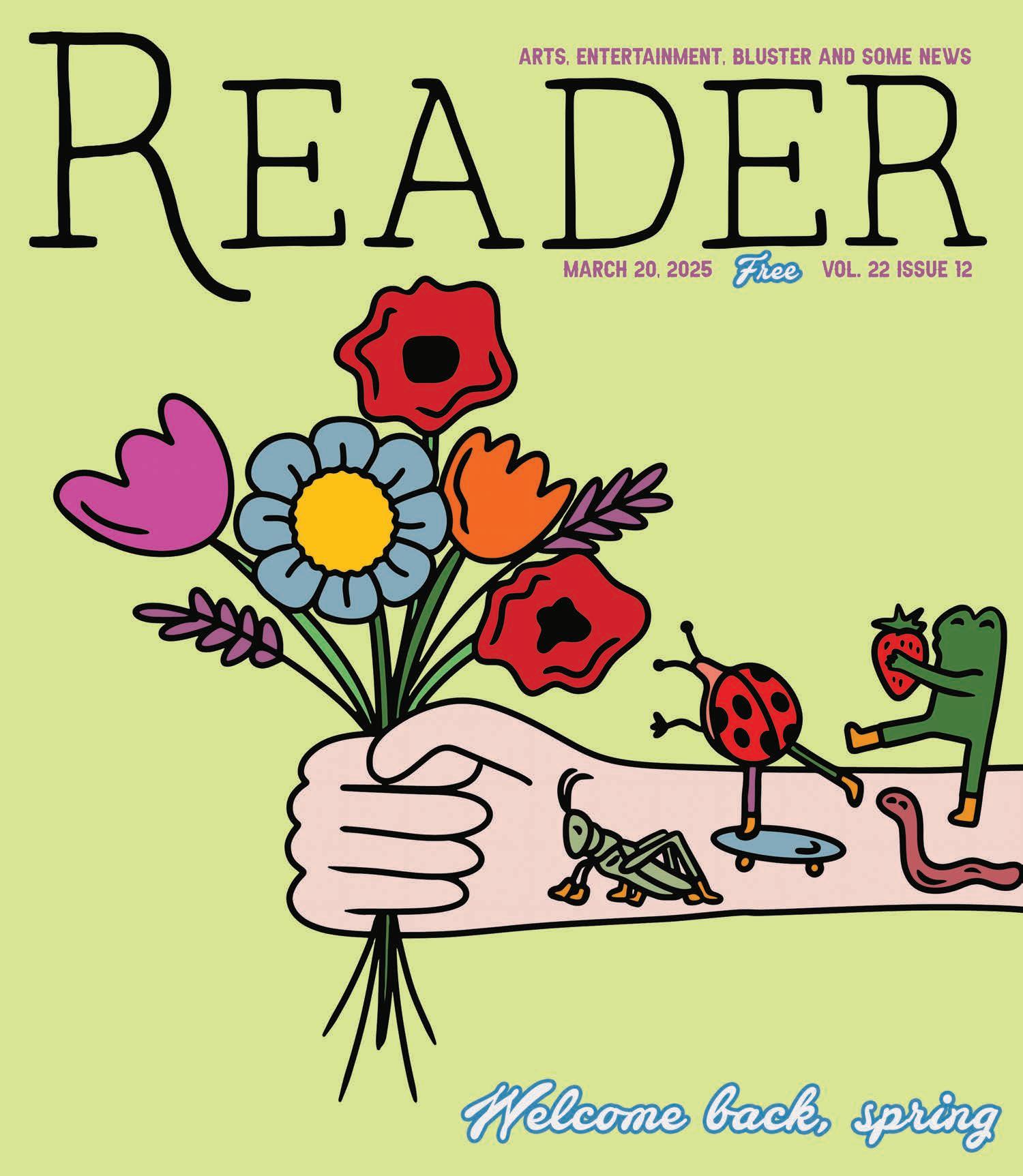 The Reader is printed on recycled paper using soy-based ink. Leftover copies are collected and recycled weekly, or burned in bonfires to appease the gods of journalism. For back issues, contact the publisher. Free to all, limit two per person, please.